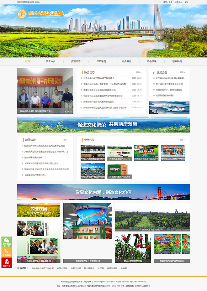近年來,海南臺資企業(yè)協(xié)會在政府及相關(guān)部門的關(guān)懷指導(dǎo)和會員及在瓊臺商會員的支持參與下,真正做到了“政府與會員之間相互聯(lián)系的橋梁,會員之間相互了解與協(xié)作的紐帶,在瓊臺商企業(yè)家發(fā)展的平臺”,成為海南臺商溫暖和諧的“家”,獲得各界高度好評。