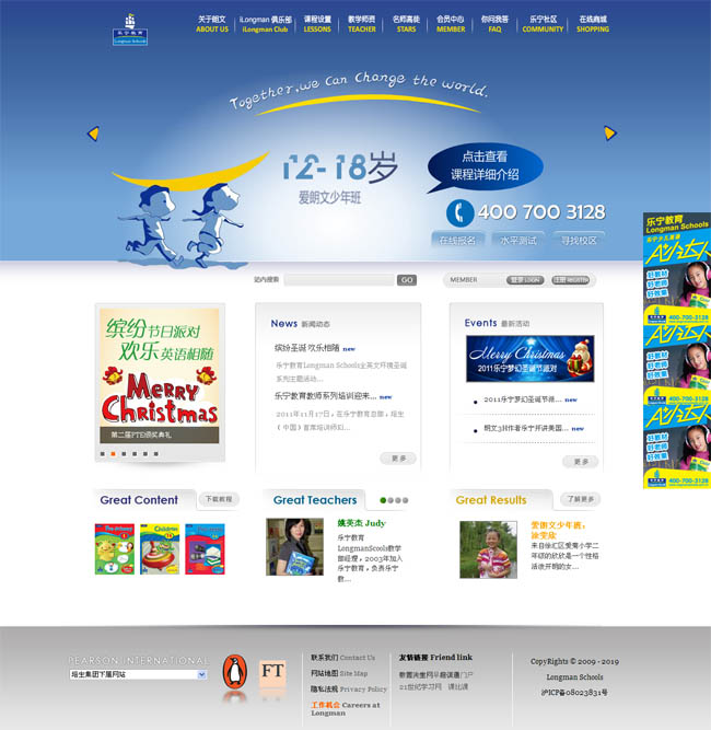 項目背景:2008年11月上海著名英語培訓(xùn)機構(gòu)--樂寧教育攜手世界著名教育出版品牌朗文成立了樂寧教育Longman Schools。朗文教育品牌擁有285年的英語教育出版、培訓(xùn)歷史,全球涵蓋110個國家、超過5億人使用朗文教材學(xué)習(xí)英語。很多教育產(chǎn)品在中國已是家喻戶曉,如《朗文字典》、《新概念英語》、《走遍美國》、《SIDE BY SIDE》等。憑借朗文優(yōu)質(zhì)的教育資源和對中國教育市場的發(fā)展戰(zhàn)略及投入,樂寧教育Longman Schools立志將創(chuàng)新的教育理念帶給中國家庭,打造中國青少年兒童英語教育的第一品牌。