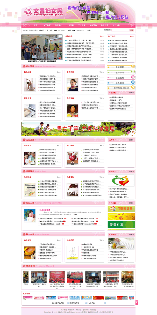 近年來(lái),文昌市婦聯(lián)以維護(hù)婦女兒童合法權(quán)益為己任,積極推進(jìn)《文昌市婦女發(fā)展規(guī)劃》和《文昌市兒童發(fā)展規(guī)劃》的實(shí)施。以“雙學(xué)雙比”、“巾幗建功”、 “文明家庭”、“雙合格”等活動(dòng)為載體,圍繞黨政所急、婦女所需、婦聯(lián)所能,引領(lǐng)廣大婦女積極投身到全面建設(shè)小康社會(huì)的偉大實(shí)踐,在社會(huì)主義“三個(gè)文明” 與構(gòu)建和諧文昌中發(fā)揮了積極作用。