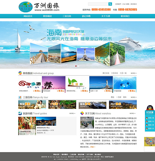海南省萬洲國際旅行社有限公司是經(jīng)海南省工商局登記注冊,由海南省旅游局審批,并足額繳納質(zhì)量保證金后,于2010年成立。公司管理、業(yè)務(wù)、技術(shù)等骨干人員,多為海南建省后在海南旅游建設(shè)大潮中踏浪而歌的佼佼者,它們久經(jīng)旅游事業(yè)規(guī)則的不斷洗禮,緊跟著海南旅游共同成長,是營銷、酒店、房產(chǎn)、交通、網(wǎng)絡(luò)、餐飲等各個(gè)行業(yè)中不可多得的人才。因此,萬洲國旅在酒店、景區(qū)、車輛、導(dǎo)游、餐廳等環(huán)節(jié)上早已有了劣實(shí)的基礎(chǔ)。憑著多年的經(jīng)驗(yàn) 、專業(yè)的知識、廣泛的資源、堅(jiān)定的信念、遠(yuǎn)大的抱負(fù)、永恒的激情、誠摯的信用、不斷創(chuàng)新的精神和忘我的工作熱情,萬洲國旅將為海南國際旅游島增添更多的光彩。