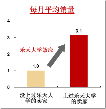 截至到目前日本樂天大學已經(jīng)為超過7萬名店長提供過指導,參加過的店家占到整體的80%以上,學習后效果明顯,參加店鋪的平均營業(yè)額比未參加過的店鋪高出3倍以上